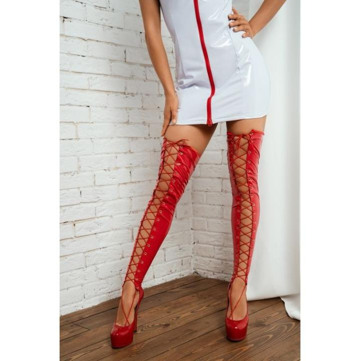 Сексуальные красные сапоги – чулки, из винила, открытый носок. Спереди шнуровка позволяющая подогнать чулки идеально по размеру. Сапоги- чулки эротичный аксессуар, который Вы сможете использовать как самостоятельный наряд или с другими костюмами.