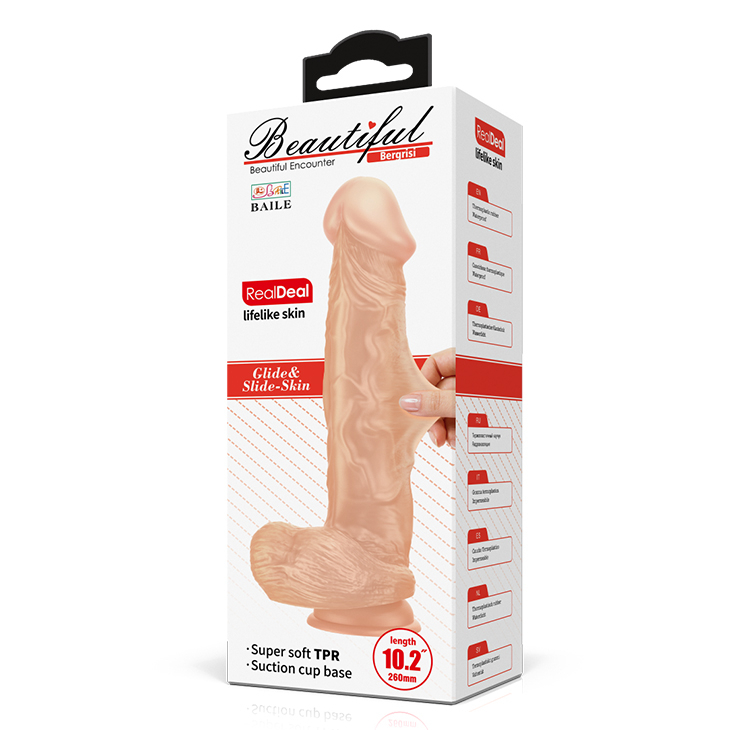 Реалистичный фаллоимитатор выполнен из очень приятного материала. Общая длина 26 см, рабчая длина 19 см, диаметр 5,5 см. Упаковка- картонная коробка.