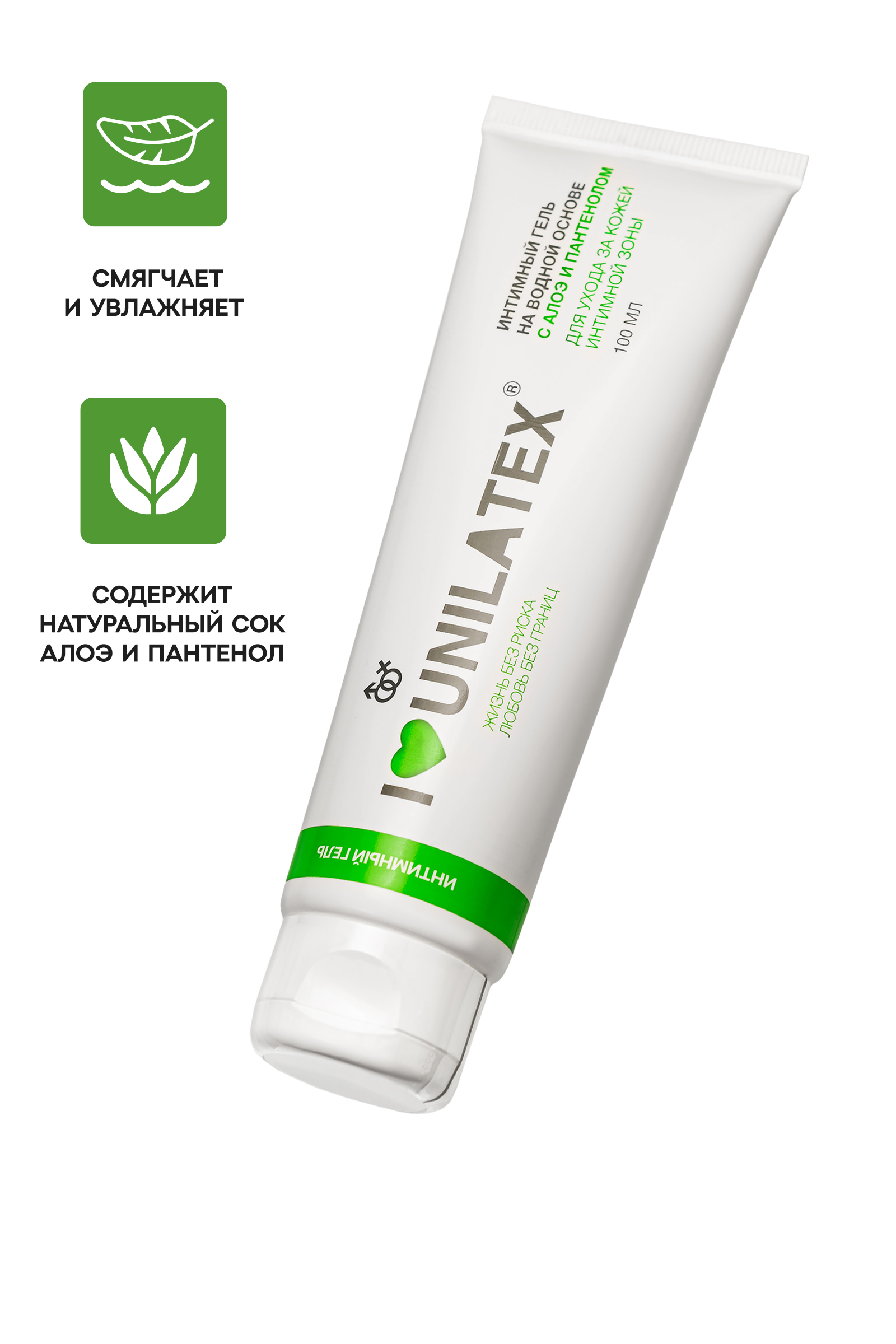 Интимный гель на водной основе Unilatex Gel Aloe Vera + Vitamin E. Содержит натуральный сок Алое. Не имеет запаха. Совместим со всеми видами латексных изделий. Гипоалергенный, растворим в воде, не оставляет пятен, не содержит токсичных компонентов, без пузырьков воздуха. Комплекс Алое Вера+Витамин Е оказывает смягчающее и восстанавливающее действие на кожу. Состав: Aqua, Glycerin, Propylene Glycol, Aloe Barbadensis Leaf Juice, Hydroxyethylcellulose, Panthenol, Sodium Acrylate/Sodium Acryloyldimethyl Taurate/Acrylamide Copolymer, Sodium Methylparaben, Silver Citrate, Citric Acid, Parfum.