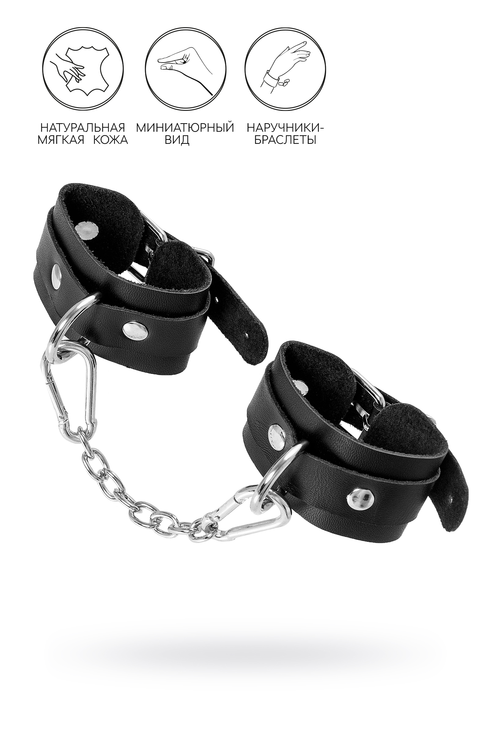 Ищите наручники для миниатюрной ручки? Тогда обратите внимание на эту модель от российского производителя Pecado. Они идеально созданы для обладательниц узкого запястья.Каждый элемент аксессуара изготовлен полностью вручную. Мягкий, чёрный материал нежно обхватывает руку и оставляет только приятные ощущения от контакта с телом. Аксессуар декорирован качественной фурнитурой, благодаря которой, при необходимости, его легко снять. Соединяются между собой с помощью короткой стальной цепочки и двух колец с карабинами. При правильном использовании не оставляют следов на теле. А особый аромат натуральной кожи придает пикантности сексуальному атрибуту.Подходит как для начинающих пар, так и для ценителей БДСМ-игр. Погрузитесь в мир пикантных удовольствий! Вместе с Pecado. 100% натуральная кожа. Ручная работа. Износостойкий, тактильно приятный материал. Надежная высококачественная фурнитура. Универсальный размер. Длина манжет – 15 см, ширина манжет – 4 см, длина сцепки – 14 см.