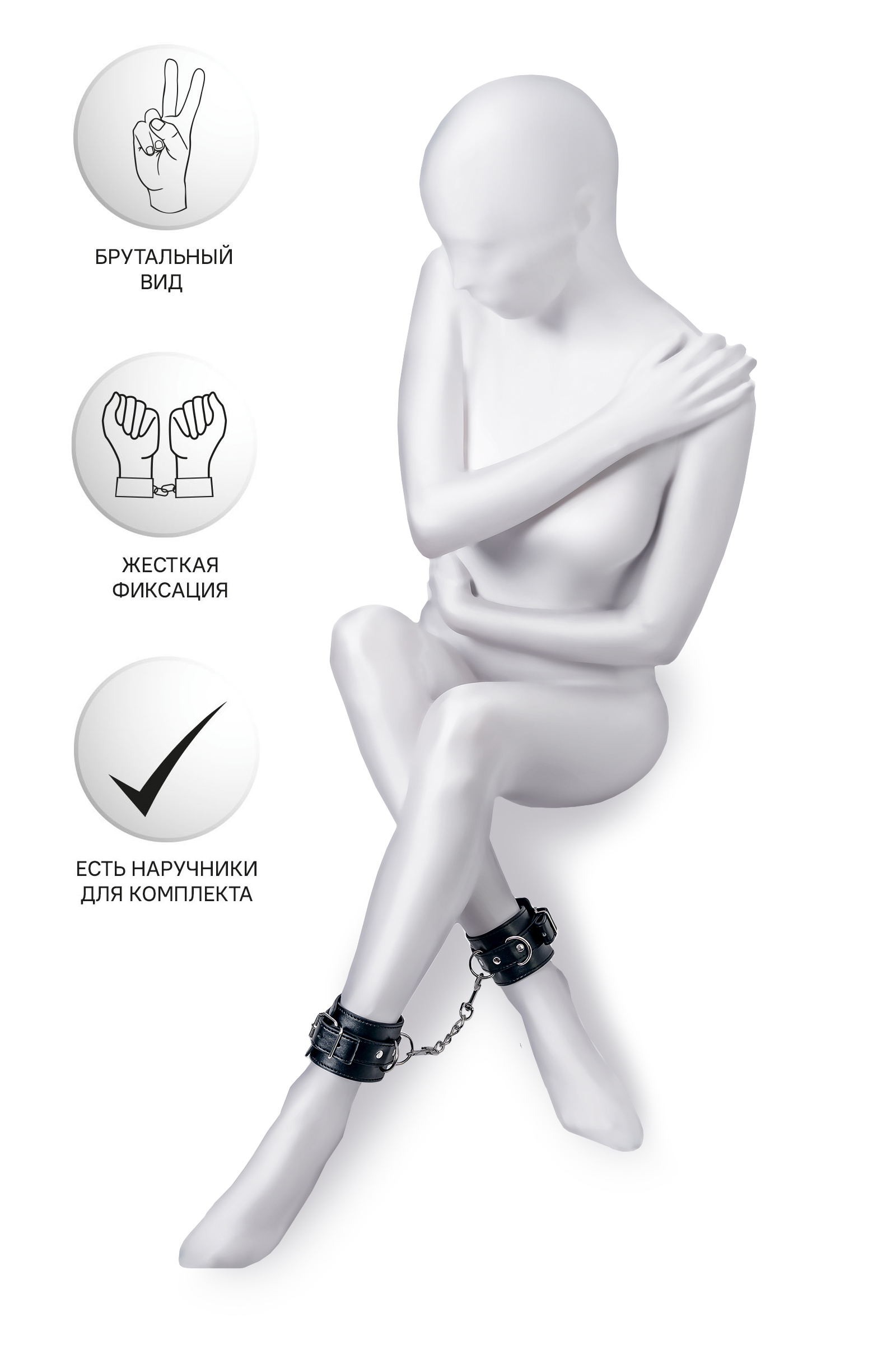 Черные оковы с металлической отделкой – брутальные ограничители свободы. К тому же, они на самом деле весьма жестко обхватывают ноги и надежно соединяют их между собой цепочкой на карабинах. Три кольца для крепления дают возможность дополнить поножи аксессуарами и использовать различные варианты фиксации.Длина оков позволяет использовать их практически на любой размер ног. Отрегулировать размер и силу обхвата легко с помощью ремешка и металлической пряжки. Черные оковы с металлической отделкой – это стиль и функционал. Теперь Доминант покажет, что значит грубое обращение и полный контроль над свободой.Материал: PU кожа, металлЦвет: черныйДлина: 26,5 смШирина: 6 смДлина сцепки: 15,5 см