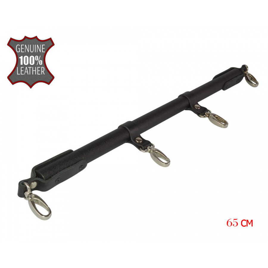 Распорка состоит из металлического основания и кожаных ремешков, удерживающих карабины. Цвет черный. Длина распорки 65 см.