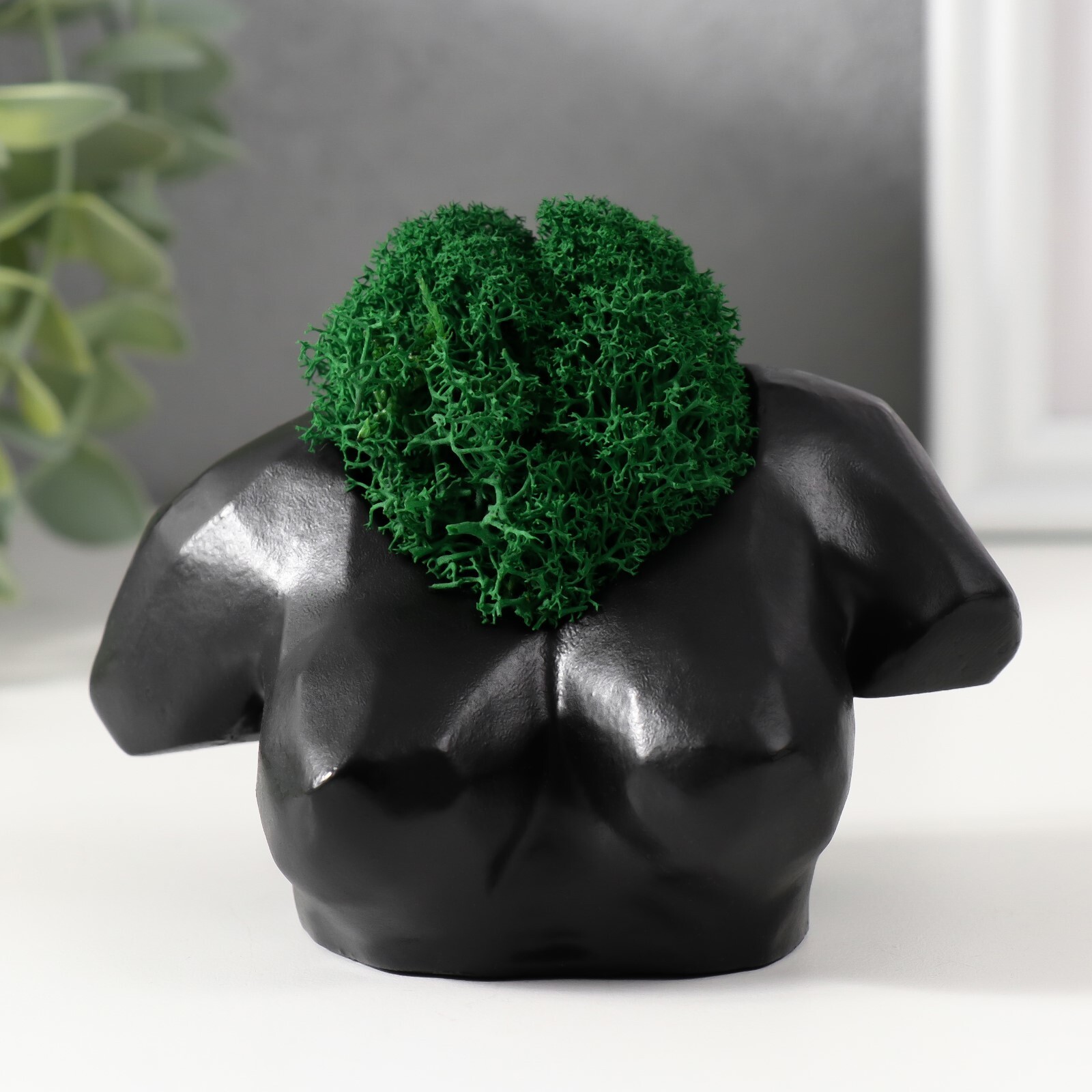 Стабилизированный мох в кашпо из бетона «Бюст», 6.5×11 см, чёрный