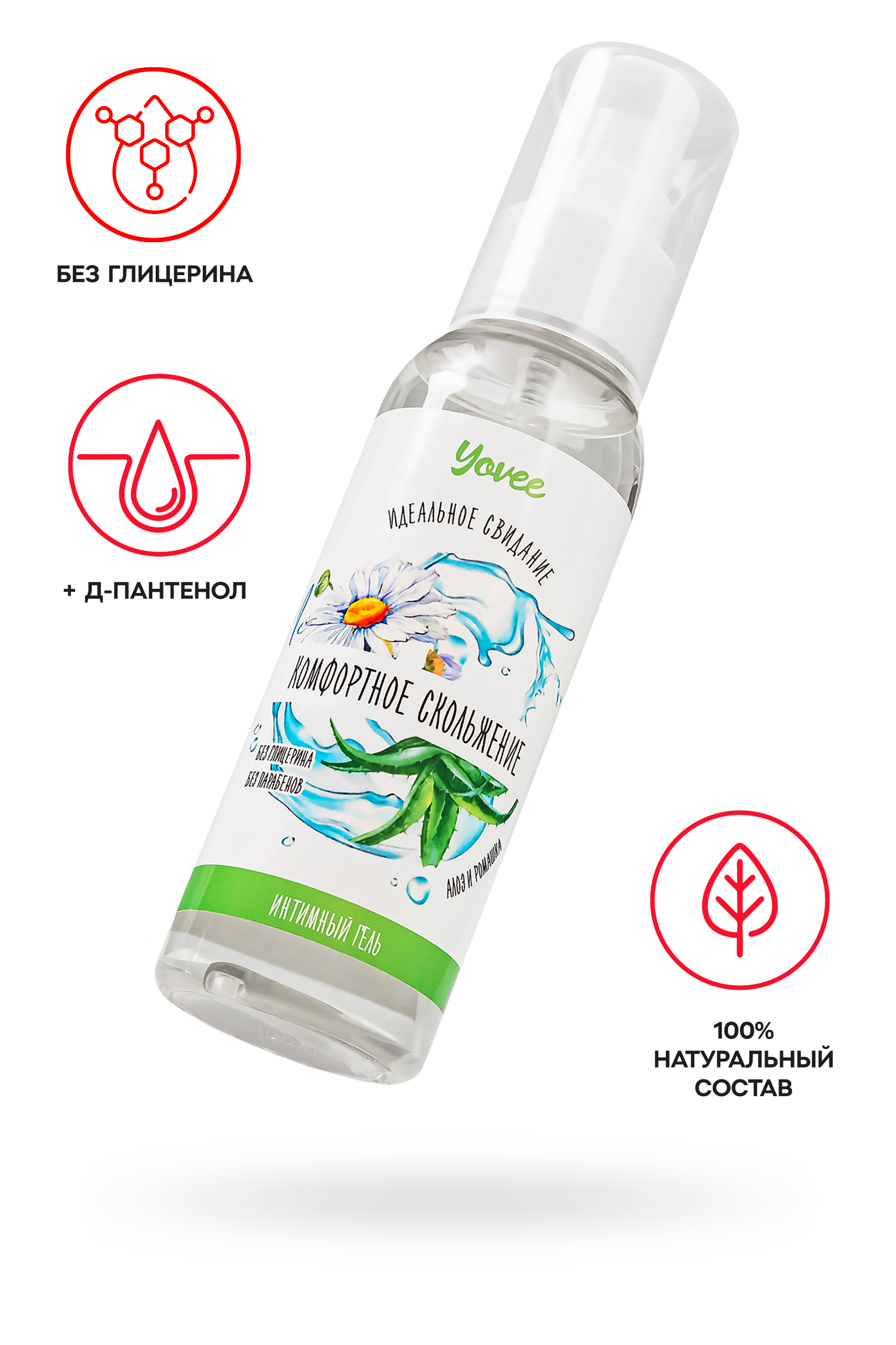 Интимный гель Yovee «Комфортное скольжение» восполняет уровень естественной смазки, создает мягкое и комфортное скольжение без ощущения липкости. Благодаря натуральному составу смягчает и увлажняет, улучшает эластичность кожи и слизистой, снимает раздражение, устраняет сухость влагалища. Легко смывается водой, не оставляет следов на одежде и постельном белье. Подходит как для вагинального, так и для орального секса. Совместим со всеми видами презервативов и игрушек для взрослых.Простой и безопасный состав: вода; Д-пантенол обладает противовоспалительным и увлажняющим действием, запускает защитные силы организма при воздействии инфекционных агентов;алоэ оказывает сильное увлажняющее, бактерицидное и антивозрастное действие, ускоряет регенерацию клеток, снижает воспаление; экстракт ромашки смягчает, уменьшает раздражение, оказывает противовоспалительное действие, снимает зуд и другие неприятные ощущения, способствует обновлению клеток; гидроксиэтилцеллюлоза - стабилизатор эмульсий, регулятор вязкости; бензоат натрия, сорбат калия и лимонная кислота - консерванты.БЕЗ ГЛИЦЕРИНАБЕЗ ПАРАБЕНОВБЕЗ КРАСИТЕЛЕЙБЕЗ ВКУСАБЕЗ ЗАПАХА